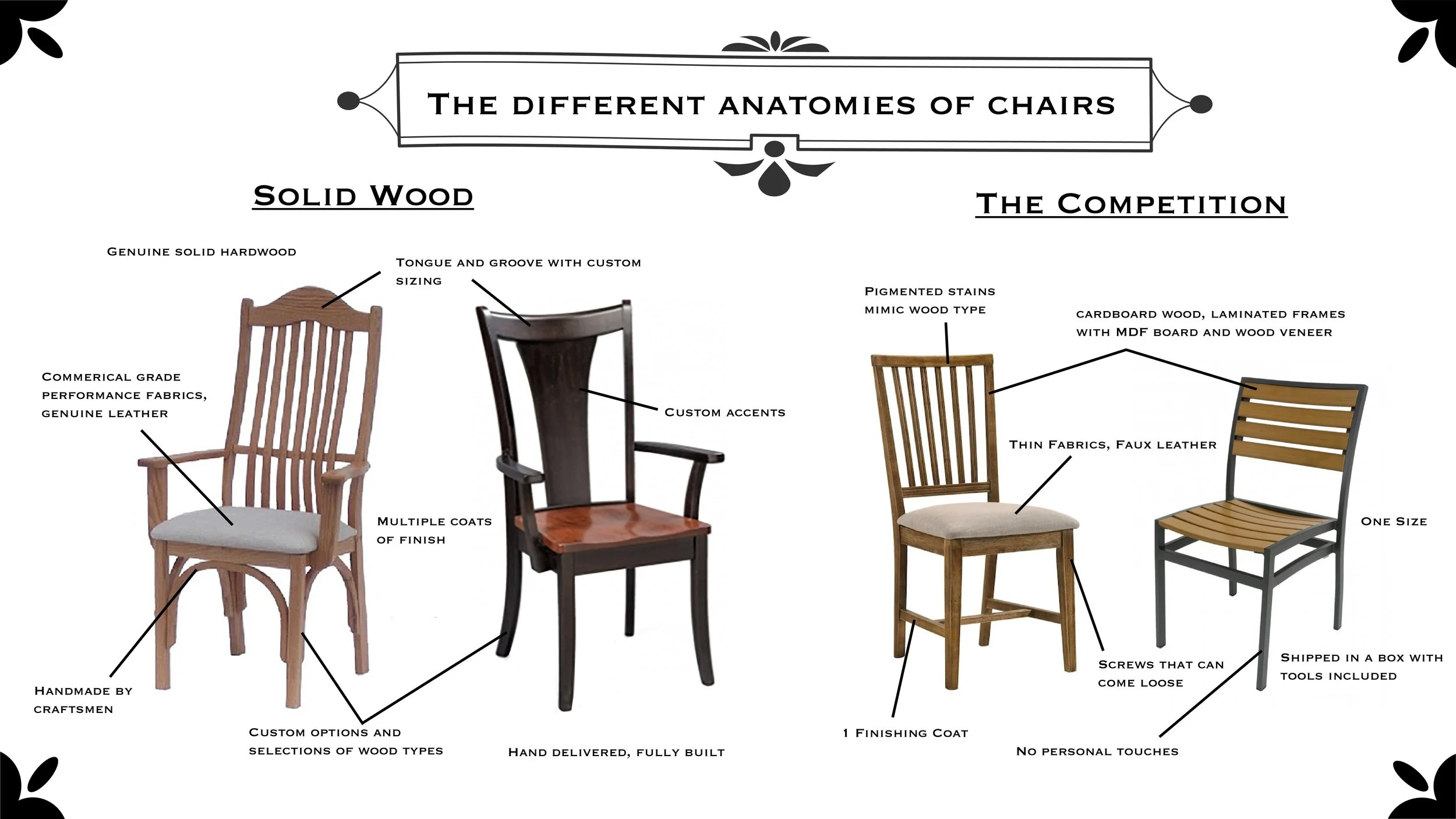 Visual aid contrasting features of the client's solid wood products against the non-solid wood competition. Made as part of the client's Wood Brand and Custom Product Portfolio.
