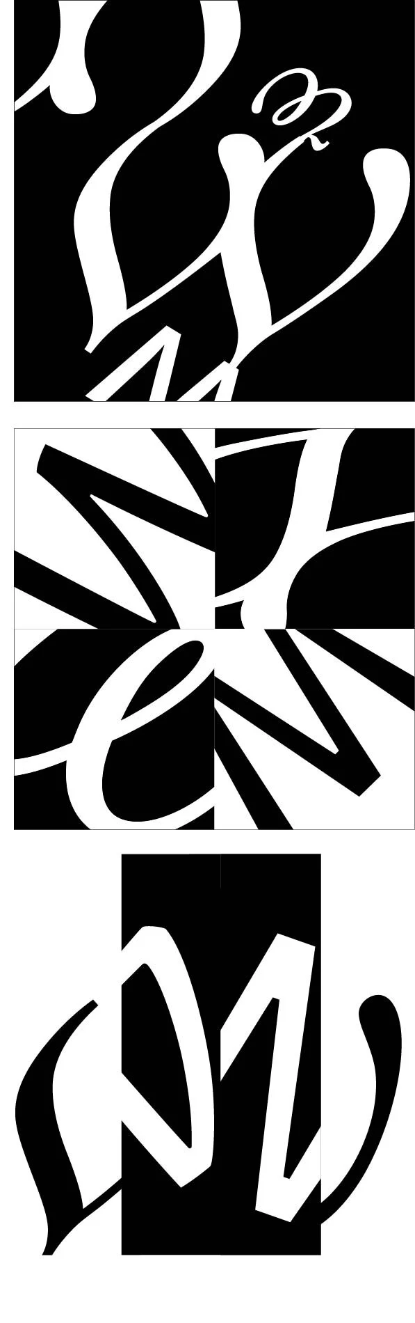 Black and White Designs Using a Single Letter in Different Typefaces.