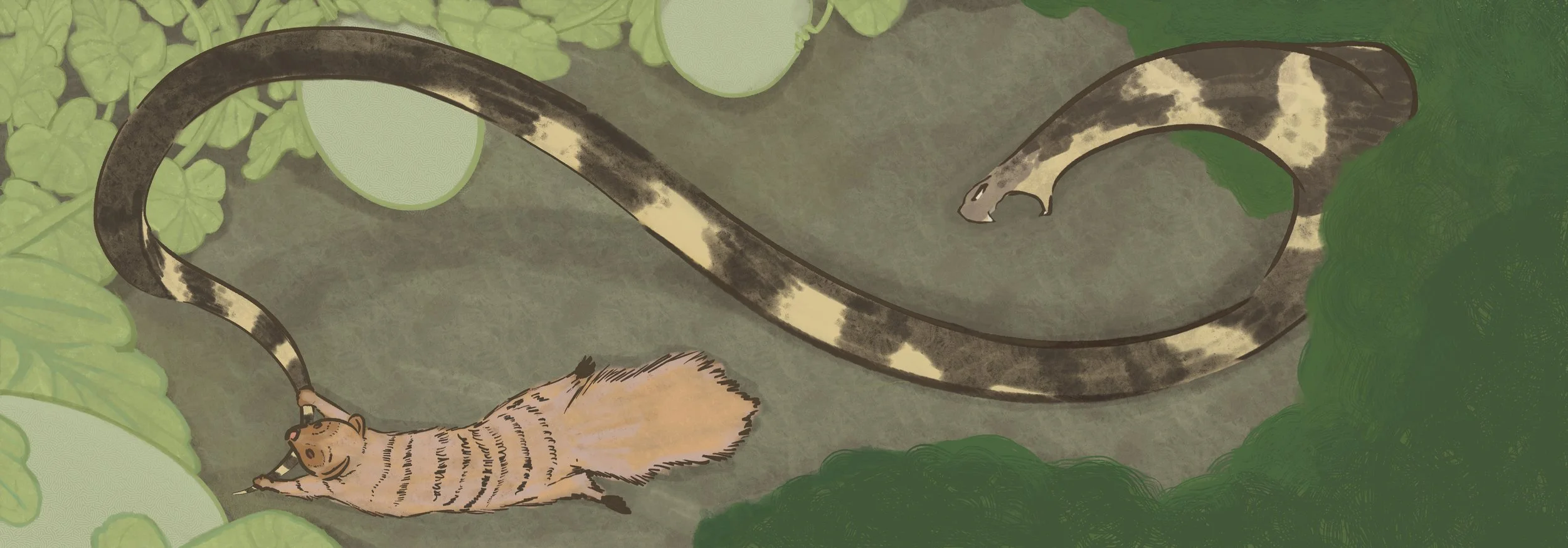 Rikki-Tikki-Tavi Fights the Cobra in the Melon Patch, Digital Illustration of an excerpt from Rudyard Kipling's The Jungle Book