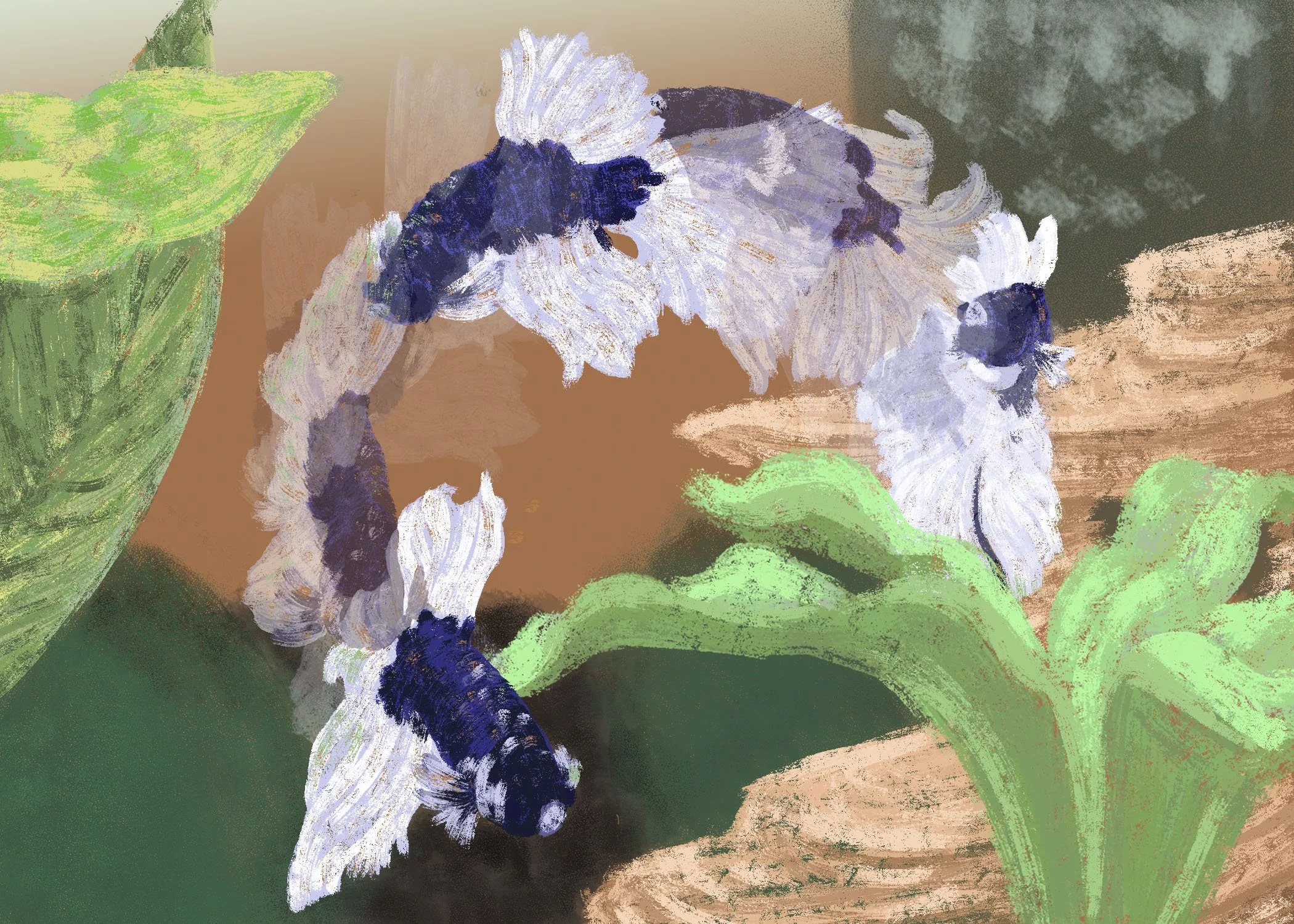 Pluto Swimming; Study of a Betta, Digital Painting.