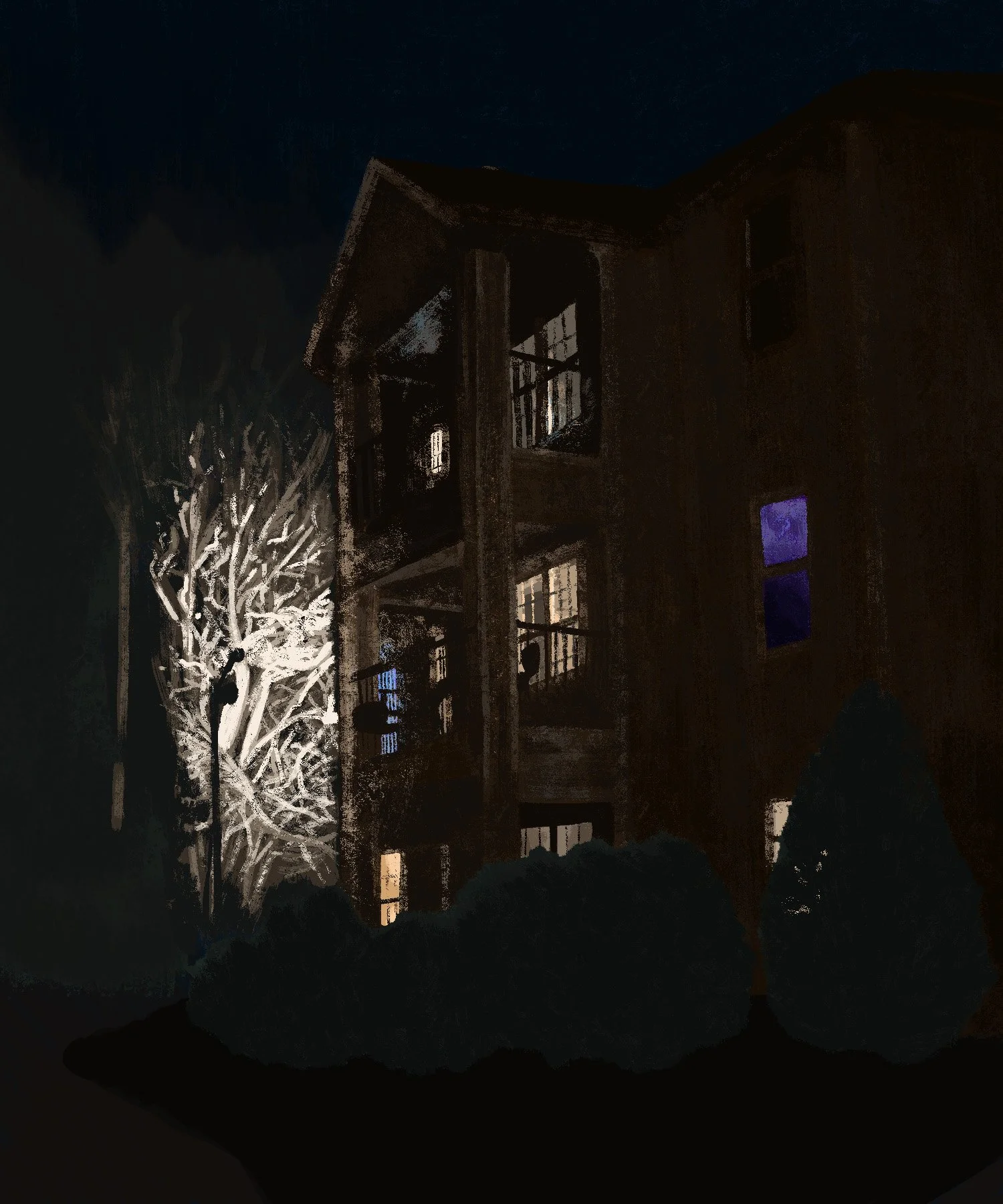 Study of Nighttime Light from Lamps and Windows, Digital Painting